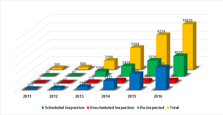 Figure 1: The number of inspections conducted by the NFA during 2011-2016